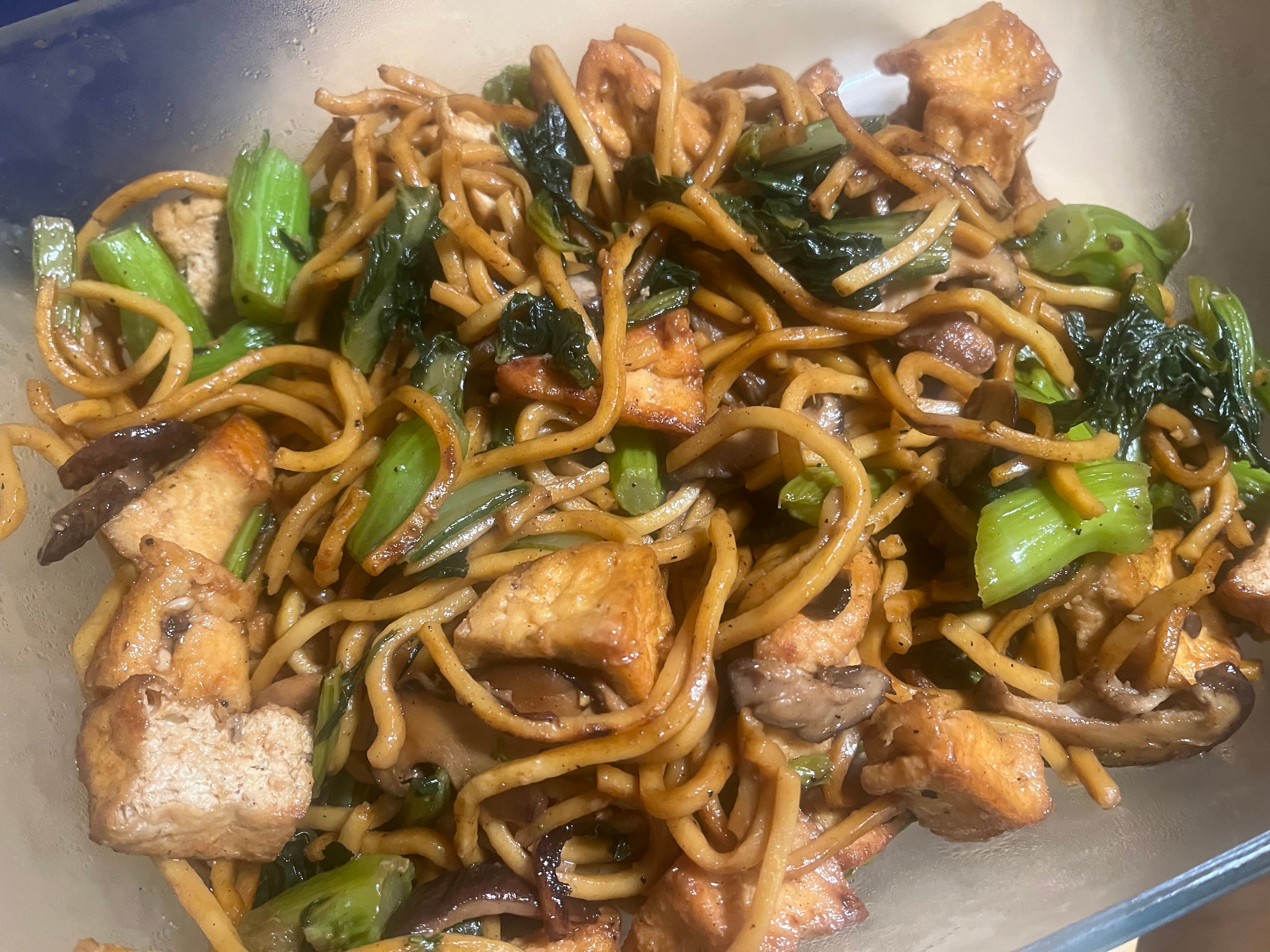 The noodles were my main order of business, so I could make Hetty Lui McKinnon’s Hokkien Mee, originally developed for ABC (Australian Broadcasting Corporation)’s lifestyle vertical and recently shared on her Substack. My understanding is that this dish was originally made by Fujian immigrants in Southeast Asian countries like Malaysia and Singapore, before it traveled to Australia and became a popular takeout staple. Maybe because I went to a Chinese supermarket rather than a Southeast Asian one, I couldn’t find fresh noodles officially labeled “Hokkien.” But judging by online photos, they’re pretty identical to West Coast chow mein / East Coast lo mein wheat noodles. Some sources claim that you’re supposed to use egg noodles, but I stuck with Hetty’s recipe and kept them vegan. I made a few minor changes, like subbing pre-fried tofu puffs (again, sadly never available at white people stores) and yu choy (also called choy sum) for the cabbage. I’m not driving all the way out to San Gabriel and not taking advantage of the Asian specialty produce.